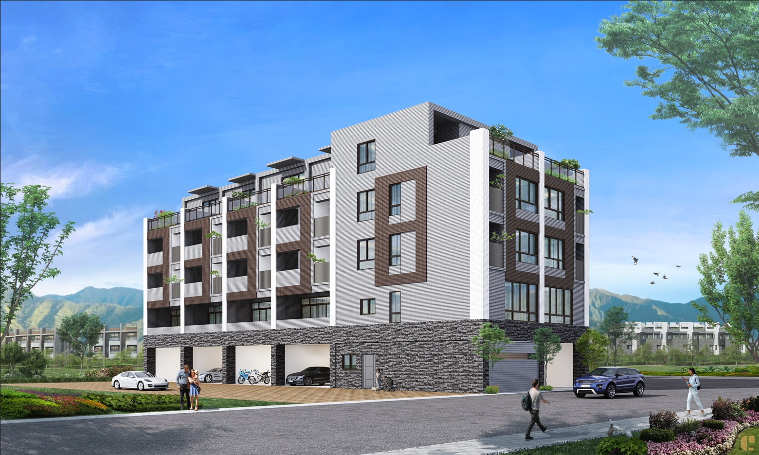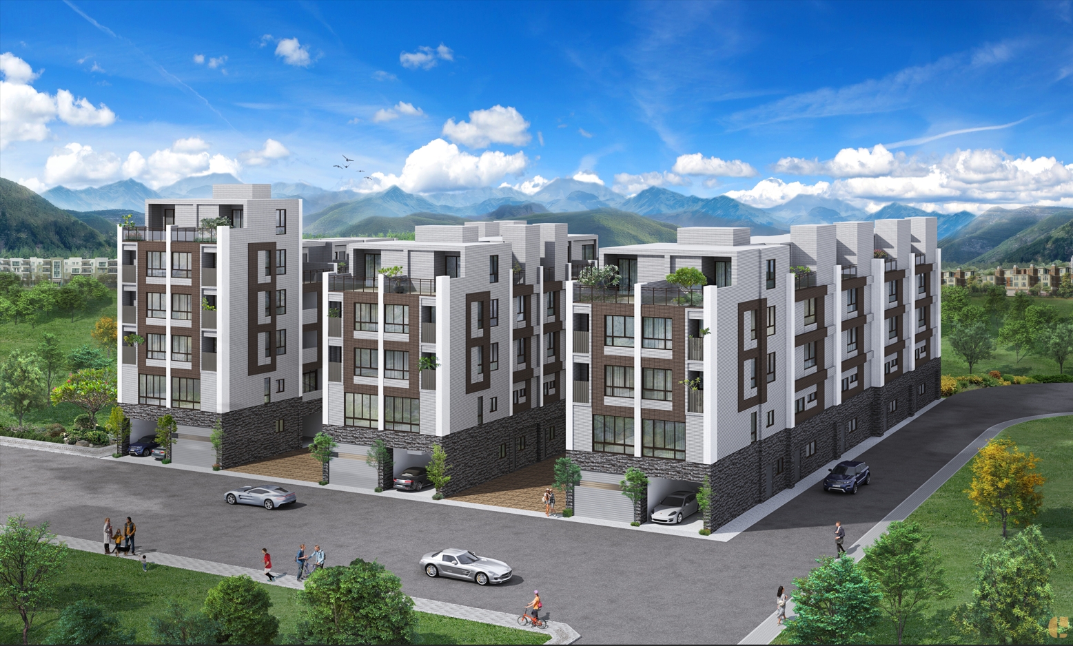 雙拼與連棟設計兼具私密與社交彈性,外觀以現代簡約線條融合自然元素,讓家成為風景的一部分。